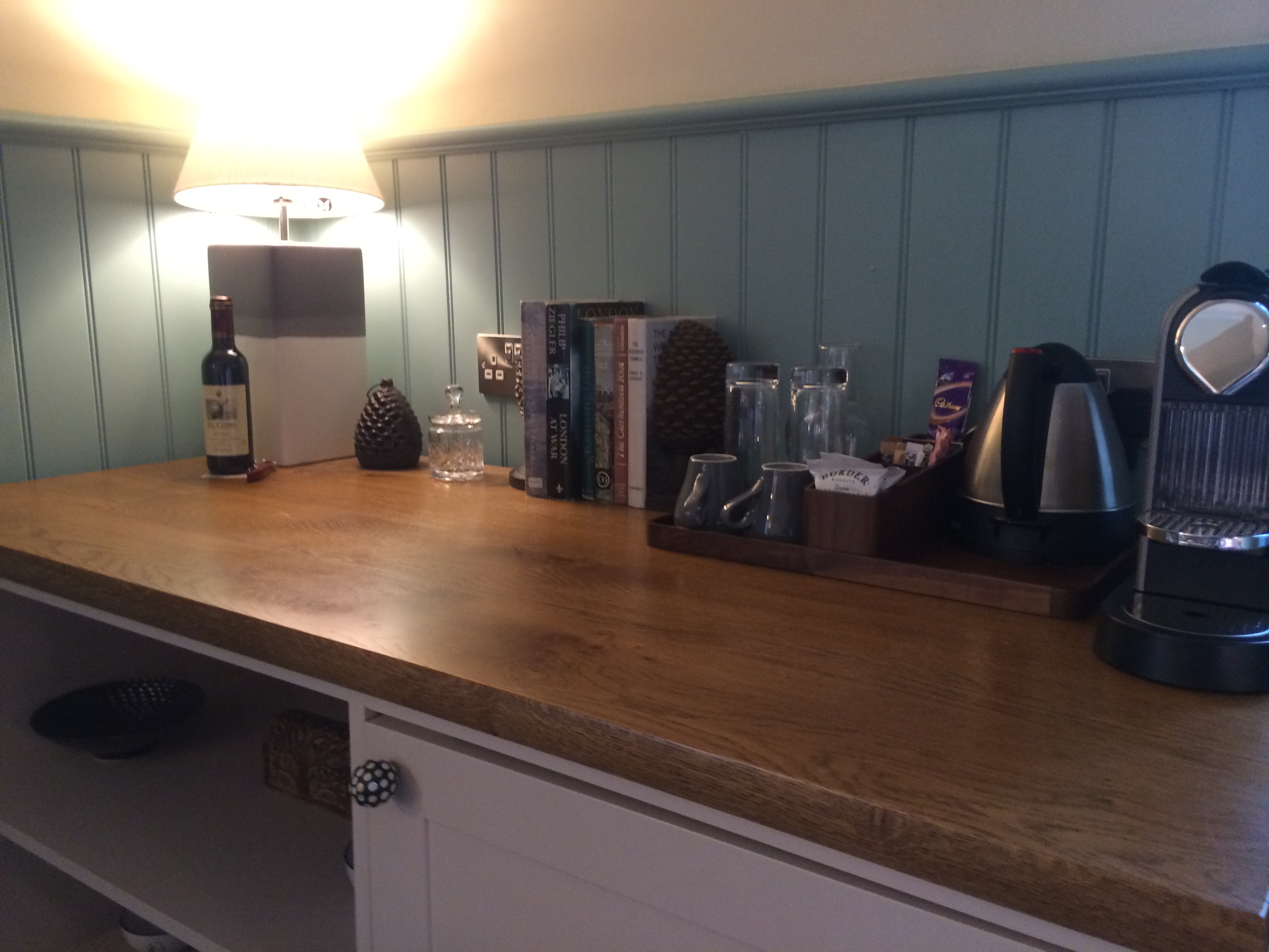 Downstairs, there’s a great bar offering up a good range of tap beers and two dining areas. The area open for breakfast only is a magnificent room with comfortable chairs and a high roof, an old styled English dining room that makes a full English breakfast an experience itself.