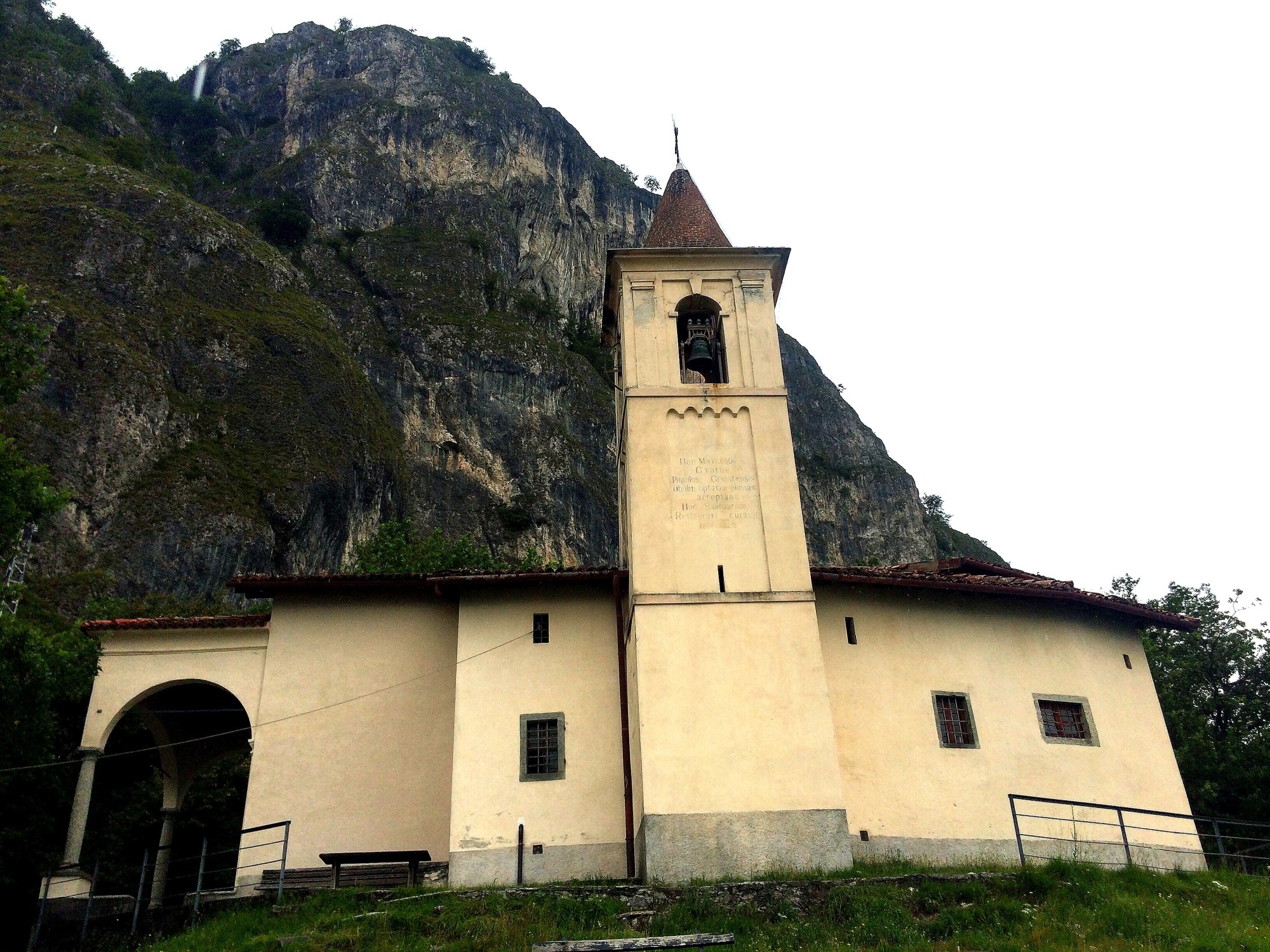 I spied a church halfway up the cliff face.