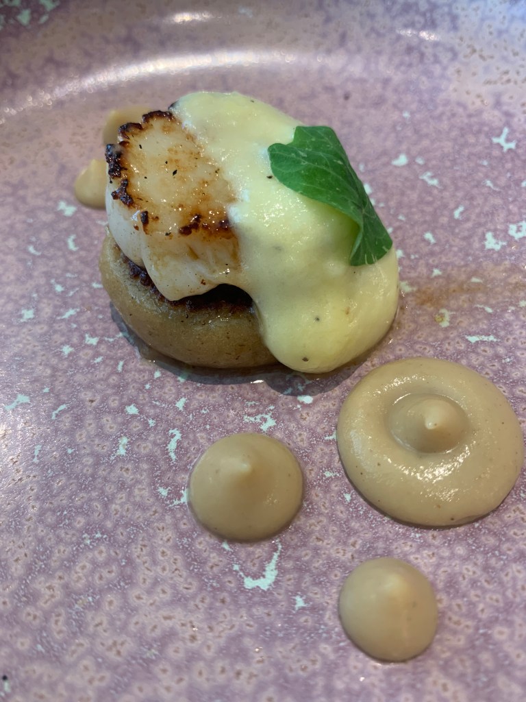 Abrolhos Island Scallop. Black garlic gnocchi, cauliflower puree, truffle emulsion.