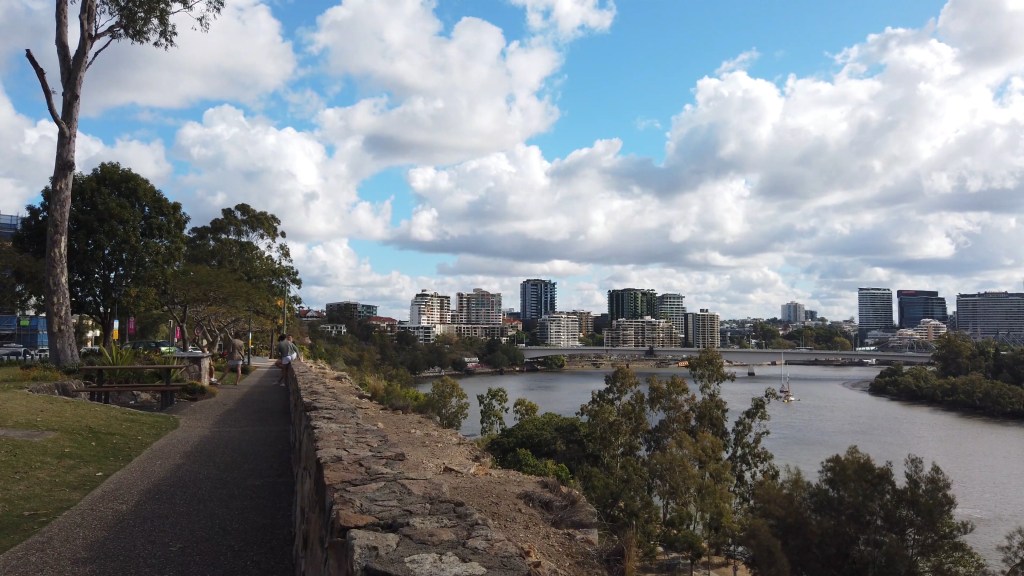 The cliffs dominate the area across the river from the Brisbane CBD, and walking along the bottom riverside walkway is a great way to observe the city skyline.