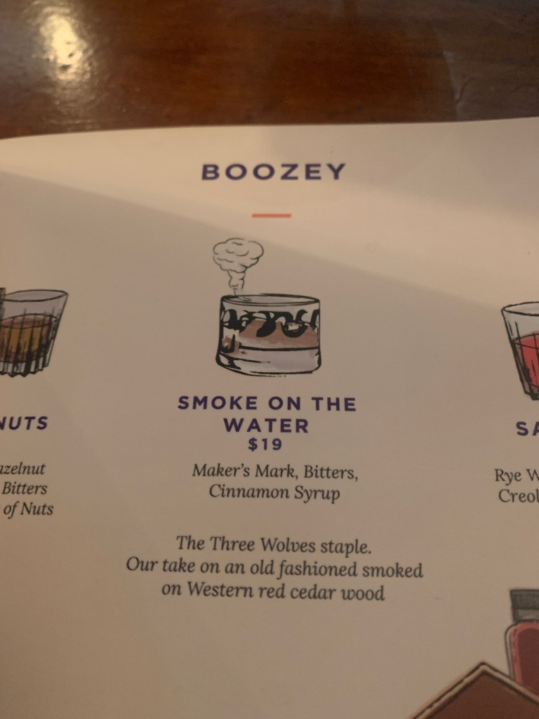 From my position at the bar I watched the bartenders make the very popular signature cocktail “SMOKE ON THE WATER”: